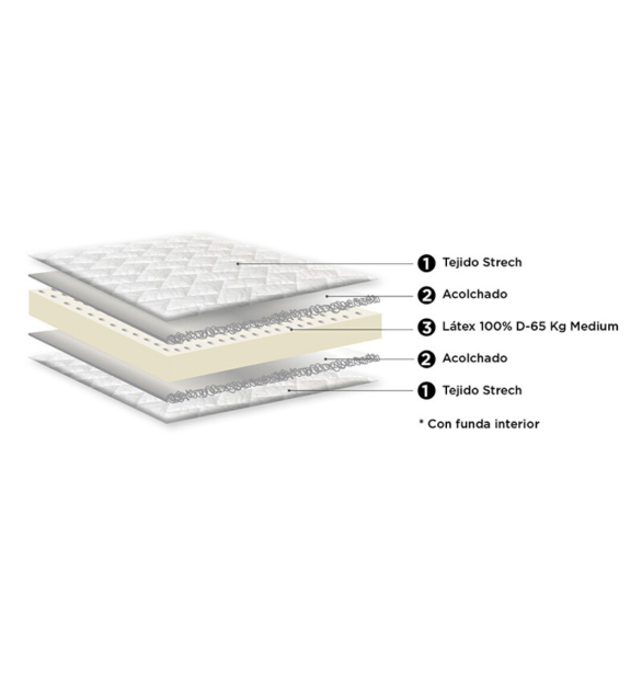 Matalàs amb nucli de làtex 100% de 18 cm, naturalment antial·lèrgic i antibacterià, que evita l'electricitat estàtica. El seu encoixinat permet alleujar la pressió dels músculs, els ossos i les articulacions, i a l'ésser termoregulador i transpirable, s'adapta a la temperatura del cos i fa sensació de frescor. El seu nucli articulable fa a aquest matalàs adequat per llits articulats.