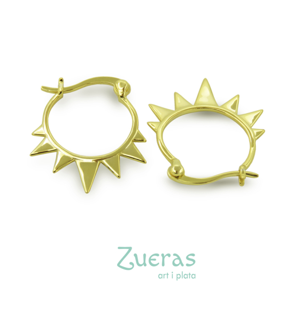 Arracades d'aro amb disseny de punxes estil roquer. Tanca fàcil de clic.