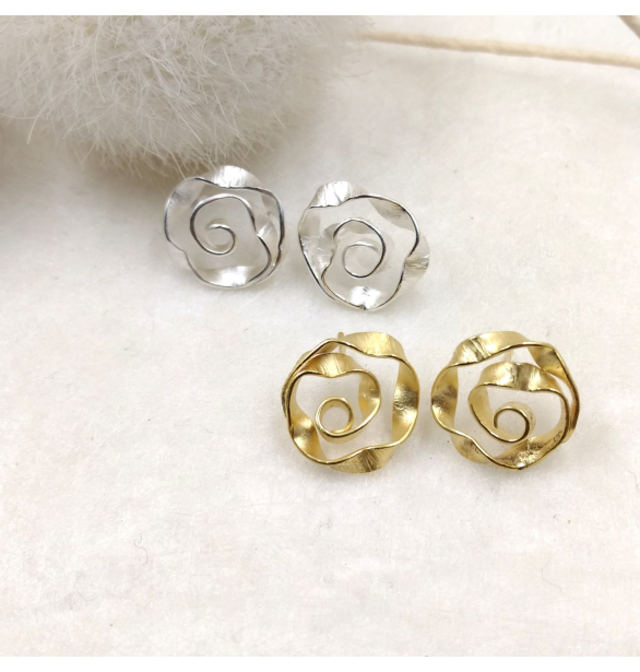 TWIST - Arracades botó petit en plata mat o plata xapat en or 18 quirats