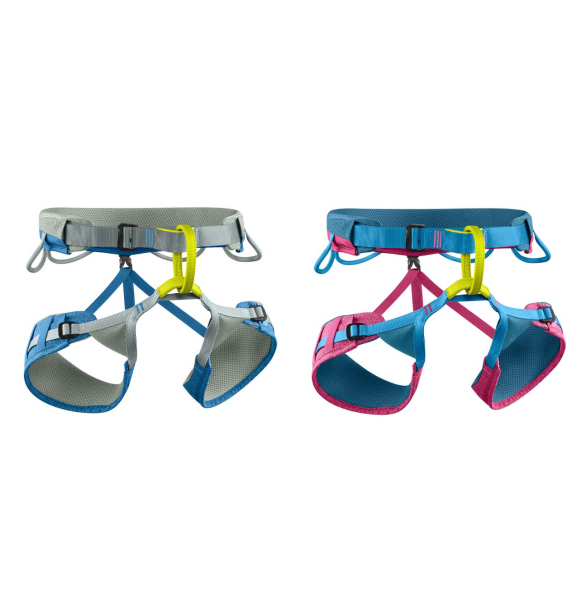 JAY: El tot terreny perfecte per a escalada, muntanyisme i ús en vies ferrades. Els camals ajustables i un punt de subjecció fàcil de centrar permeten que l'arnès s'ajusti a la mida de manera ràpida i convenient.
