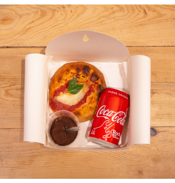 1 pizzeta, 1 tiramisù y 1 Coca-Cola